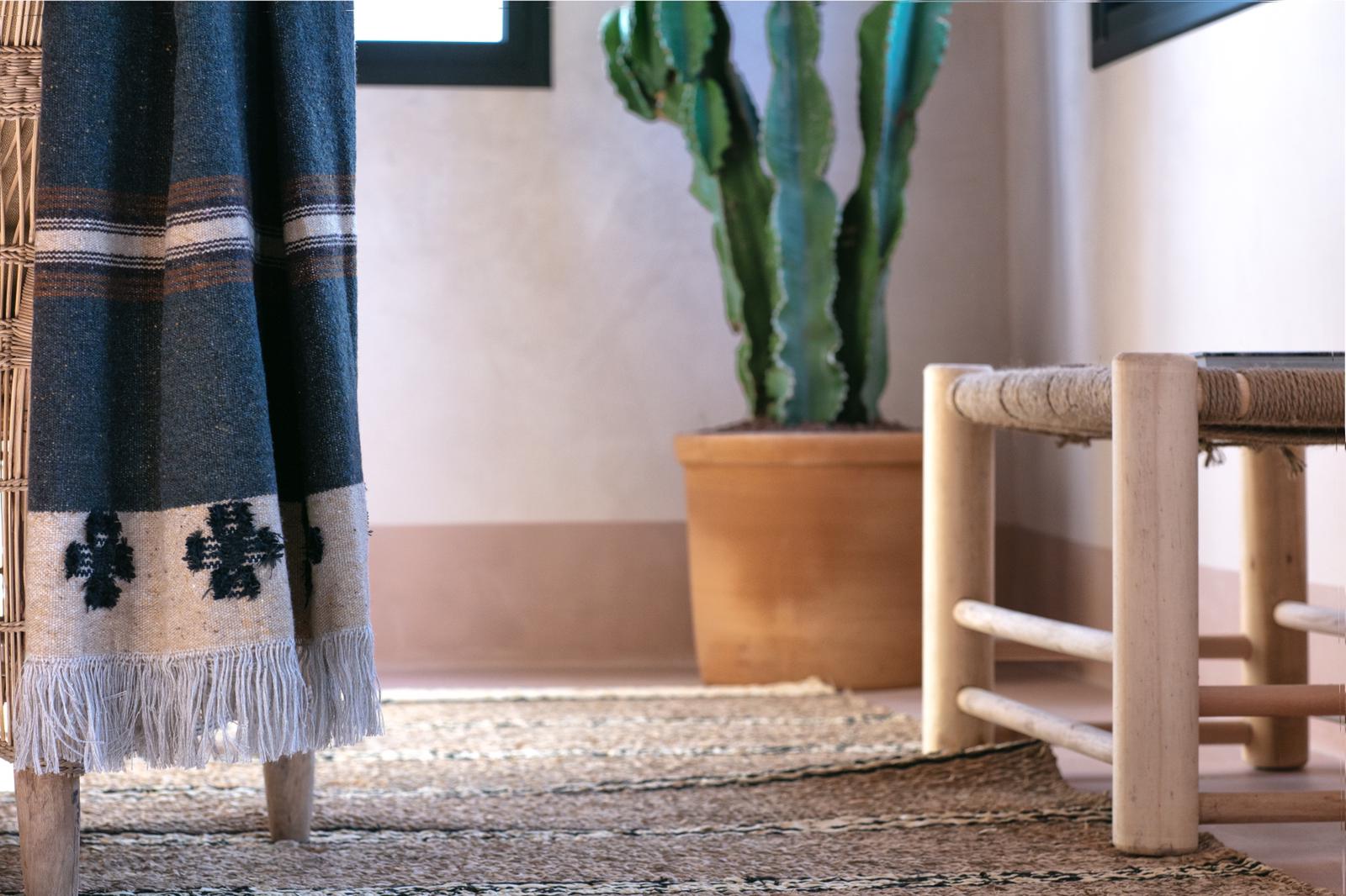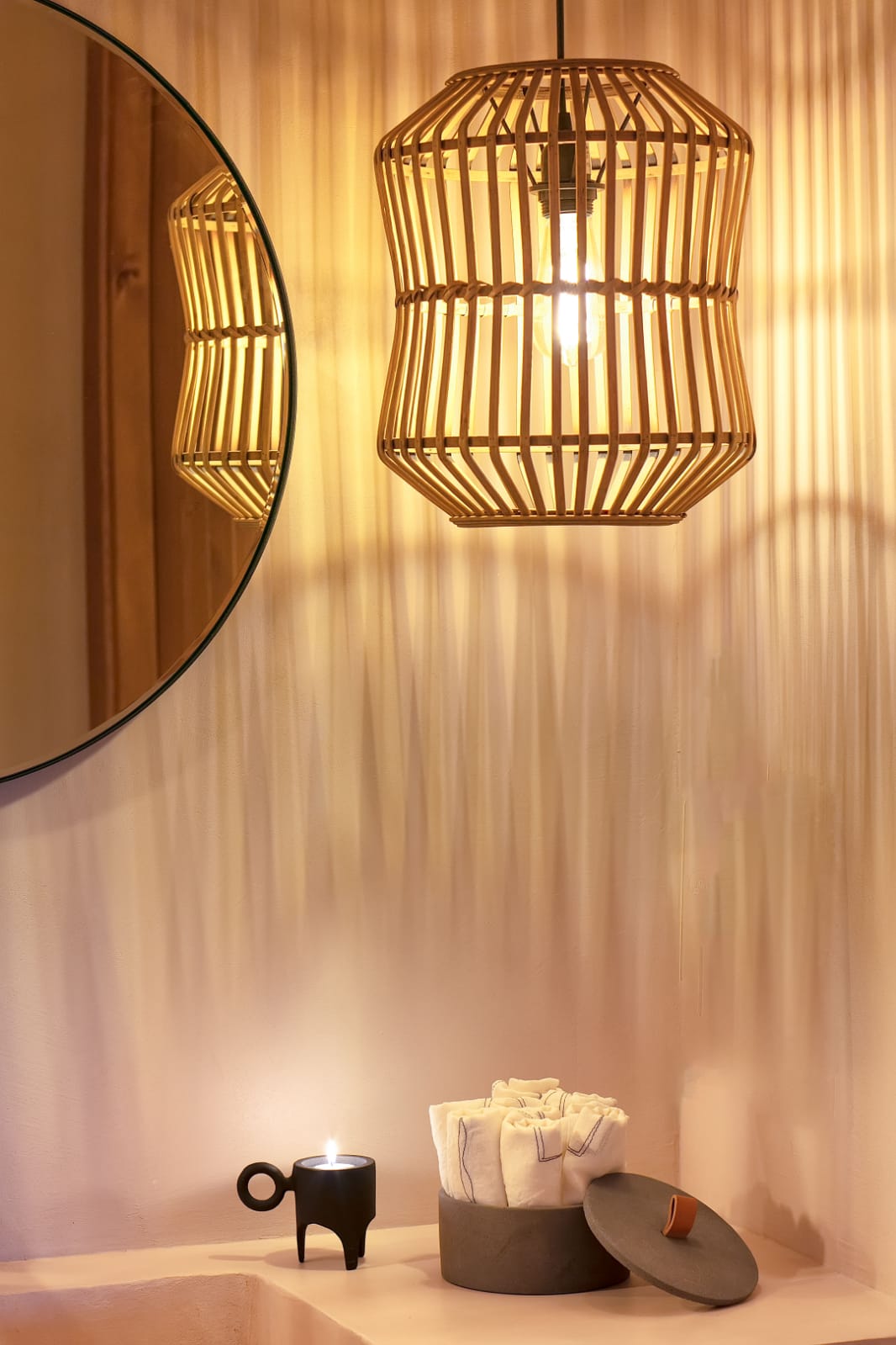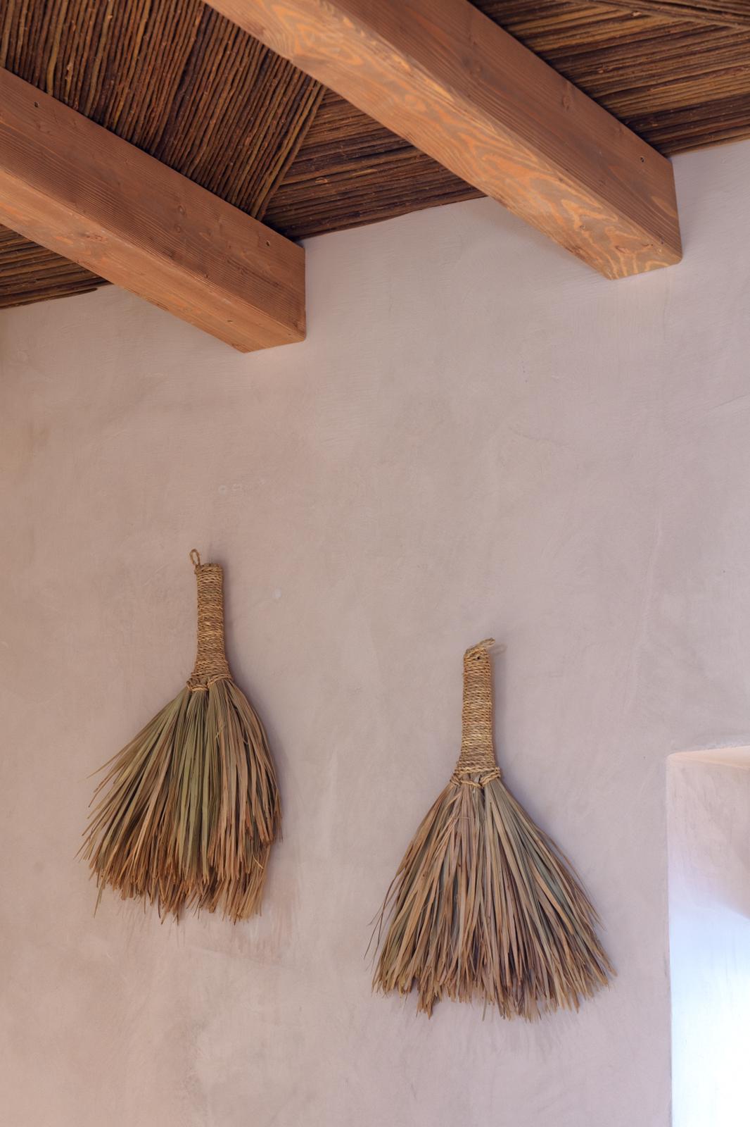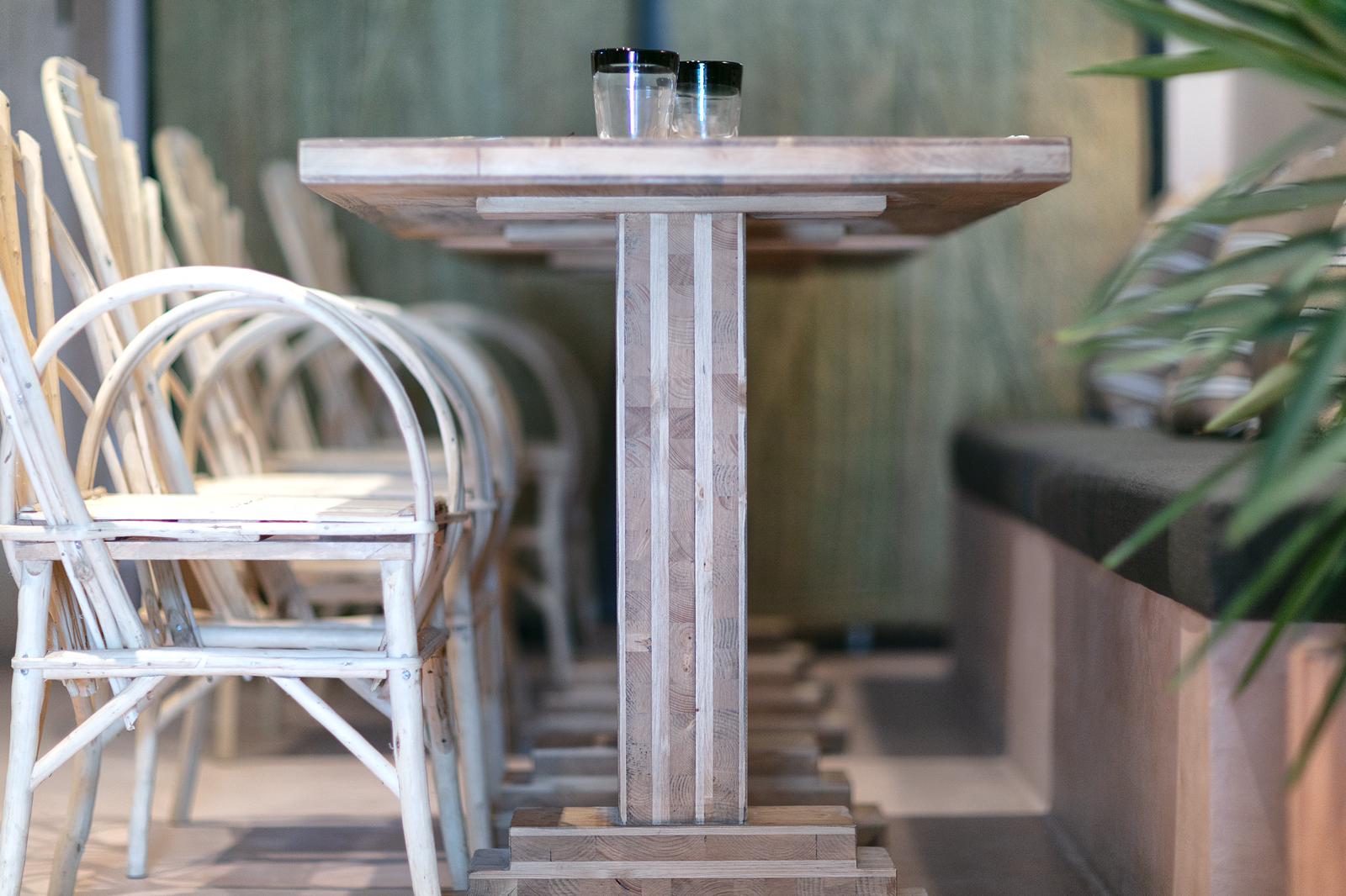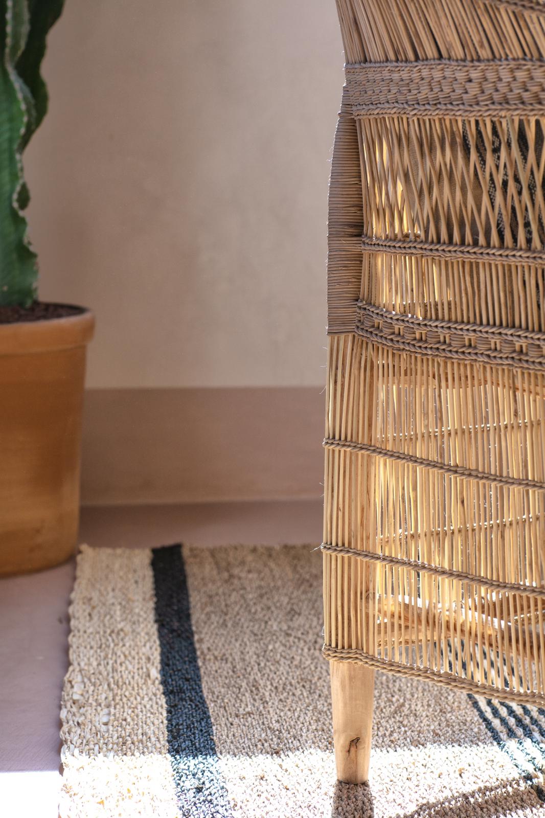 Espacio interior de diseño rústico y acogedor, caracterizado por el uso predominante de materiales naturales como la madera y el mimbre. El techo de vigas de madera expuestas añade un toque tradicional, mientras que las sillas de diseño entrelazado y las mesas de madera complementan la atmósfera cálida del lugar.