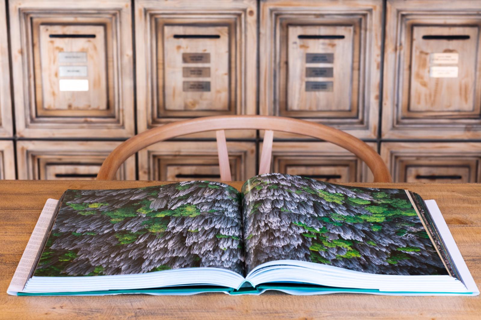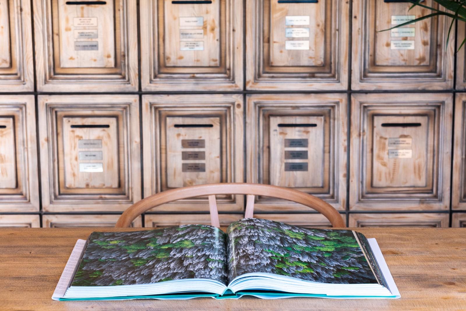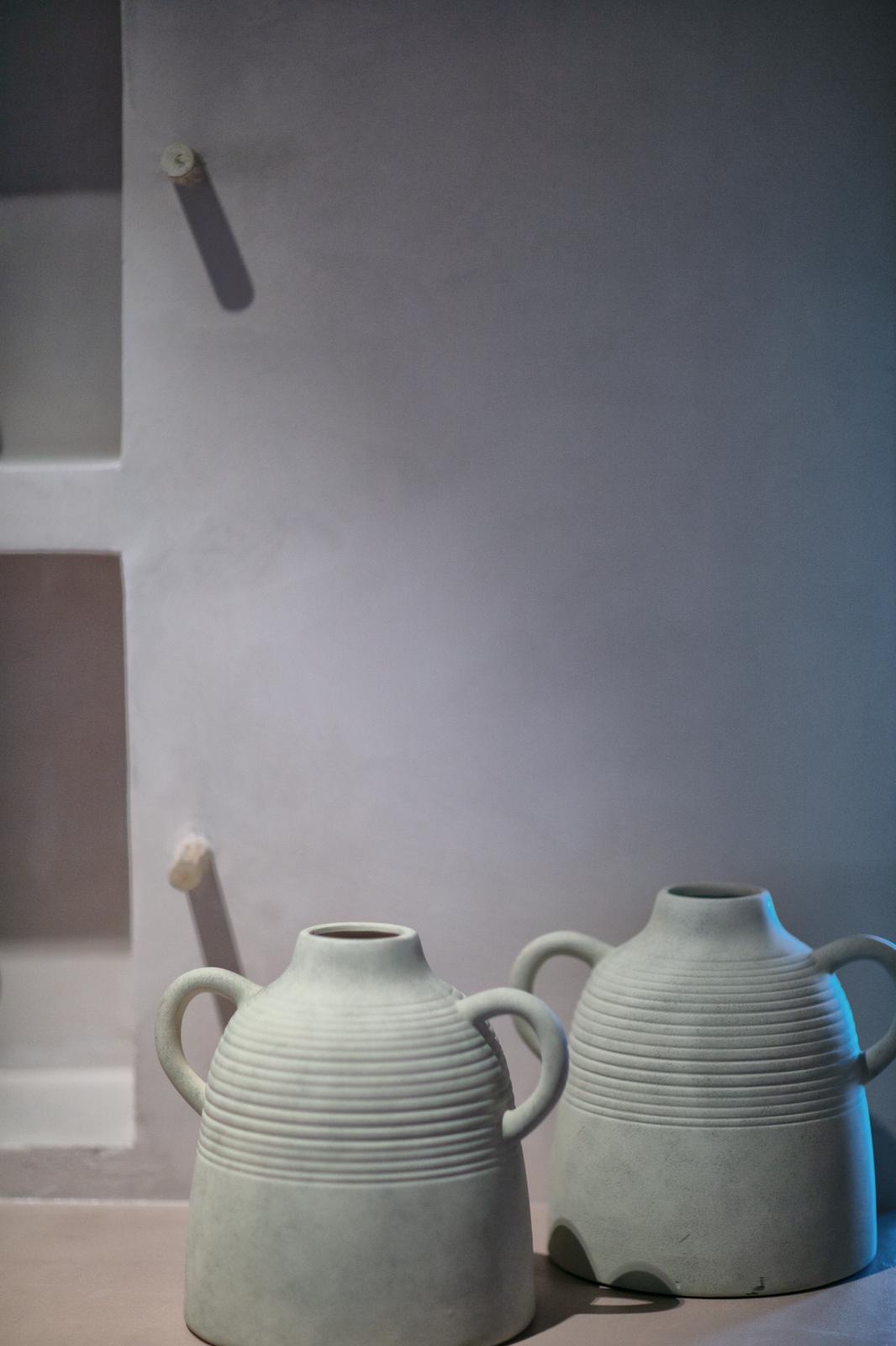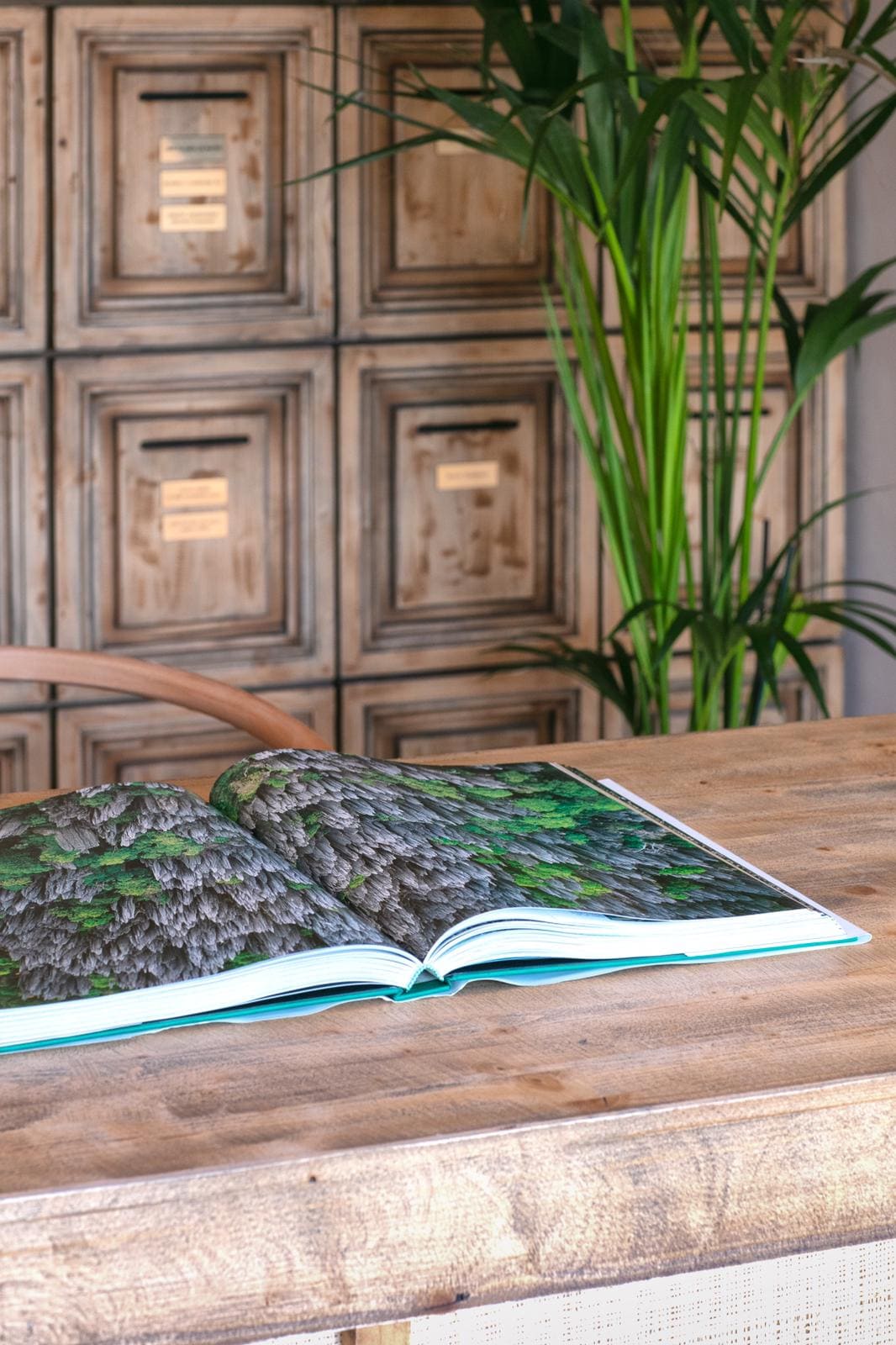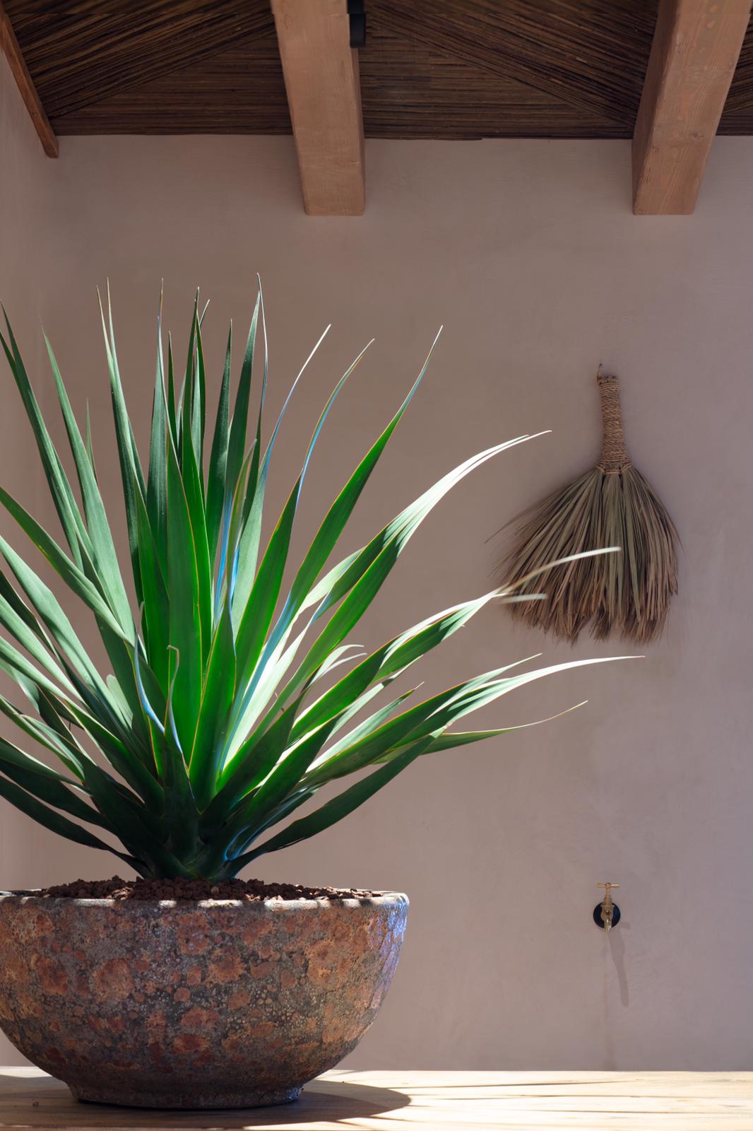 La iluminación suave y las lámparas de pared realzan el ambiente íntimo. El área del bar, con taburetes de madera y una máquina de café moderna, proporciona un contraste entre lo tradicional y lo contemporáneo. La decoración, que incluye elementos verdes en la pared, aporta un toque de frescura y conexión con la naturaleza, armonizando el espacio de manera equilibrada.